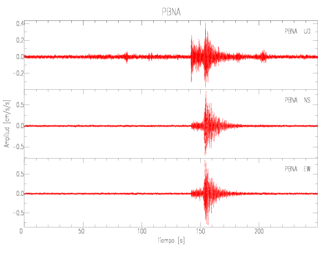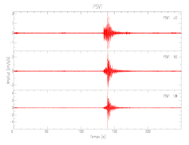 Gráficos de las componentes de aceleración para sitios con PGA > 2 cm/s2