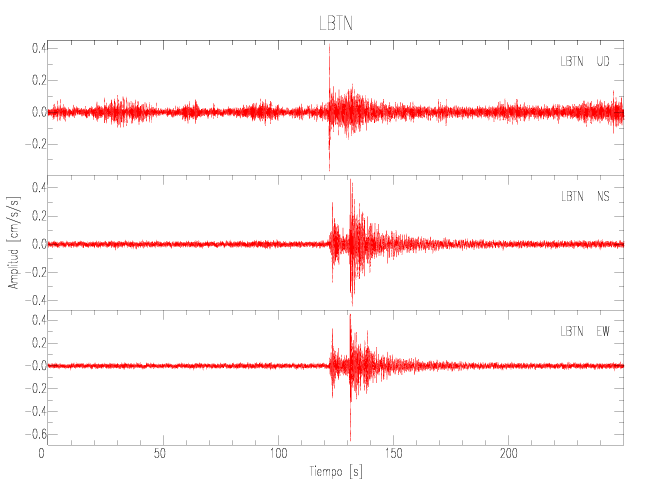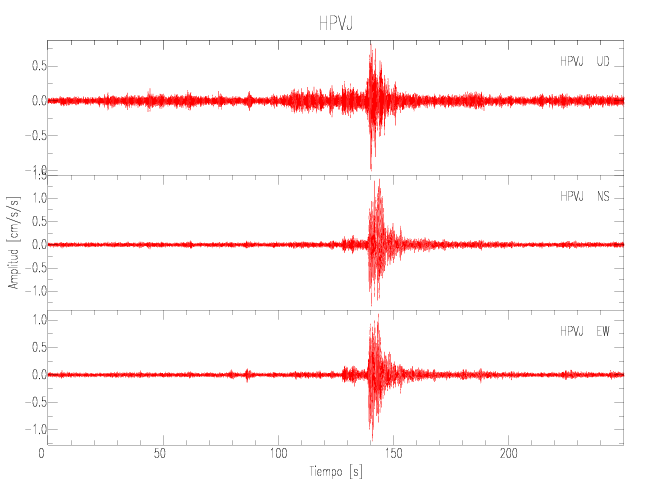 Gráficos de las componentes de aceleración para sitios con PGA > 2 cm/s2