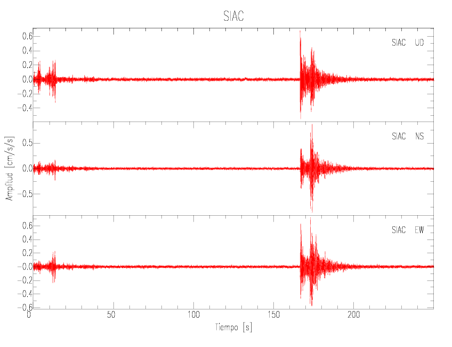 Gráficos de las componentes de aceleración para sitios con PGA > 2 cm/s2