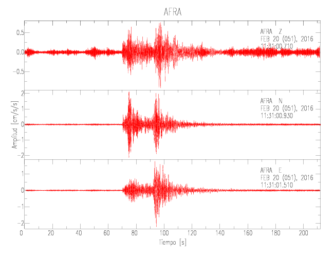 Gráficos de las componentes de aceleración para sitios con PGA > 2 cm/s2