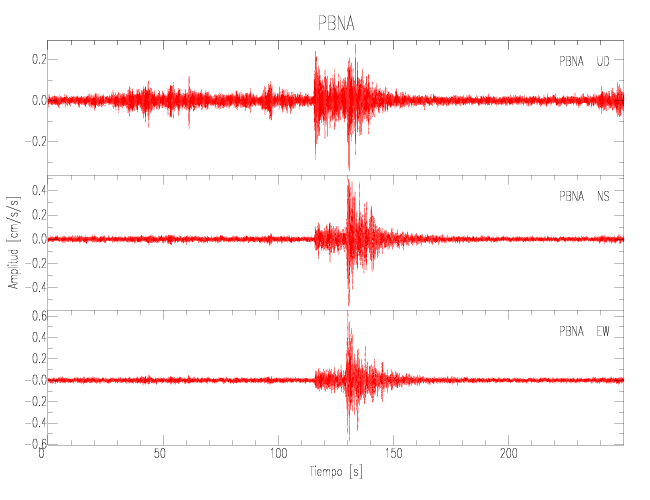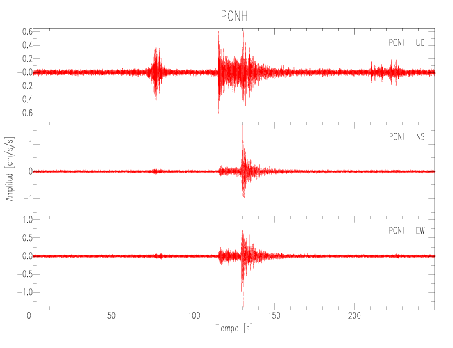 Gráficos de las componentes de aceleración para sitios con PGA > 2 cm/s2