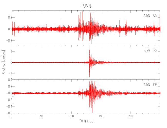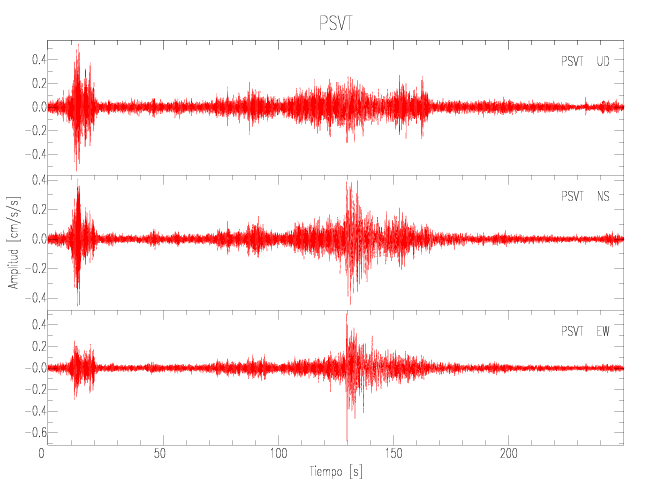 Gráficos de las componentes de aceleración para sitios con PGA > 2 cm/s2