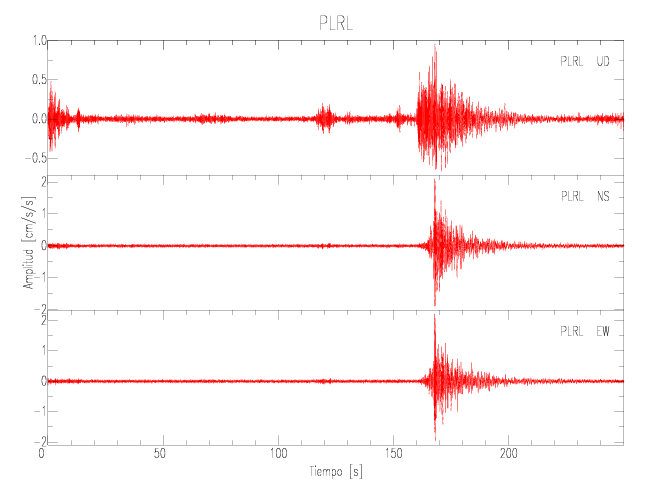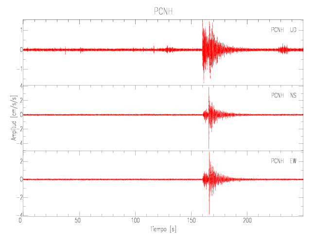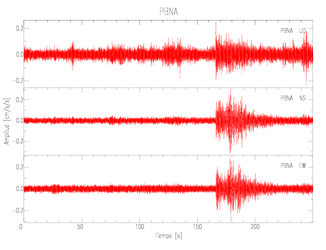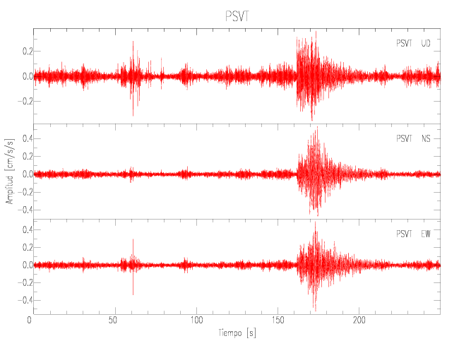 Gráficos de las componentes de aceleración para sitios con PGA > 2 cm/s2