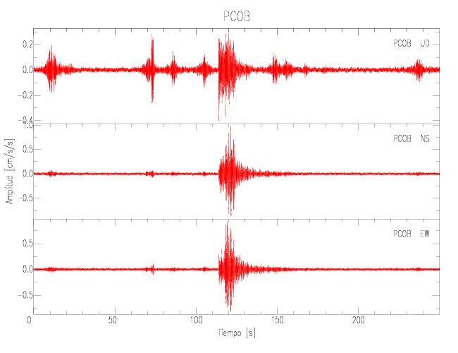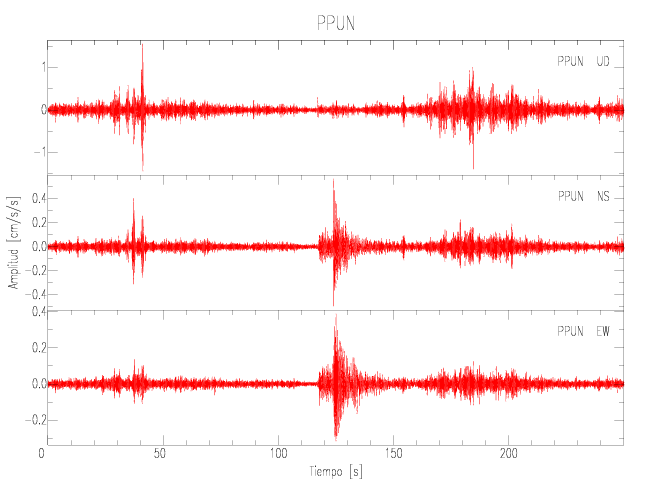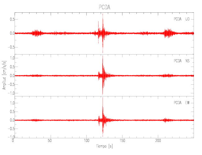 Gráficos de las componentes de aceleración para sitios con PGA > 2 cm/s2