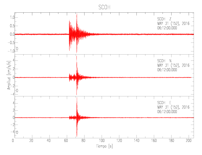Los datos de aceleración máxima registrada se interpolan para obtener un mapa de isoaceleraciones. En el se puede ver la tendencia general de la amplificación de todo el país a partir del lugar en que el movimiento fue más intenso. Se muestran los mapas para cada una de las tres componentes (Vertical, Norte-Sur y Este-Oeste) además del mapa con el valor máximo de los tres. También se muestra el mapa de los valores máximos en la componente RADIAL y TRANSVERSAL.