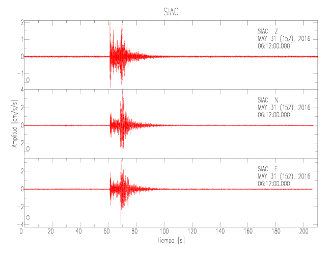 Gráficos de las componentes de aceleración para sitios con PGA > 2 cm/s2