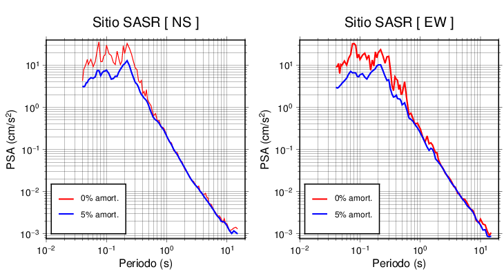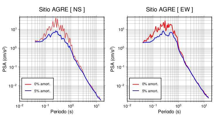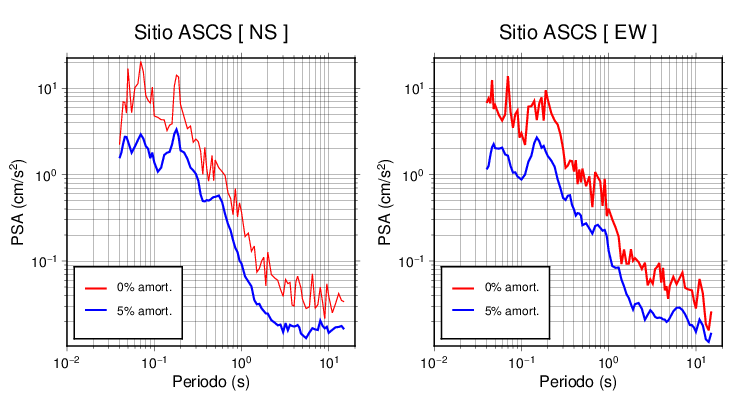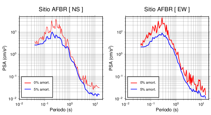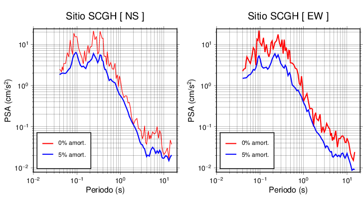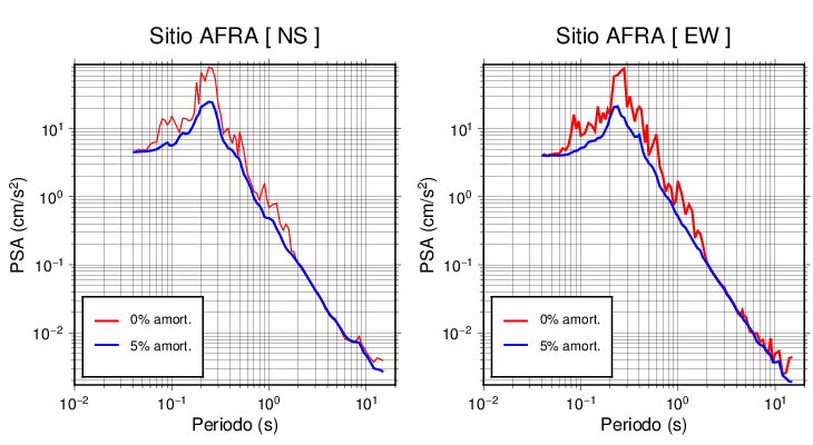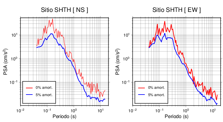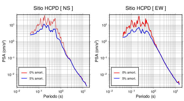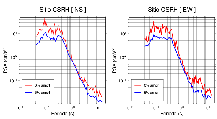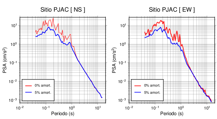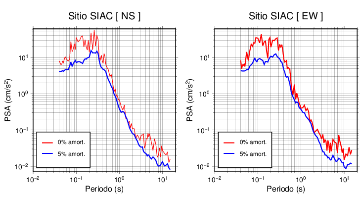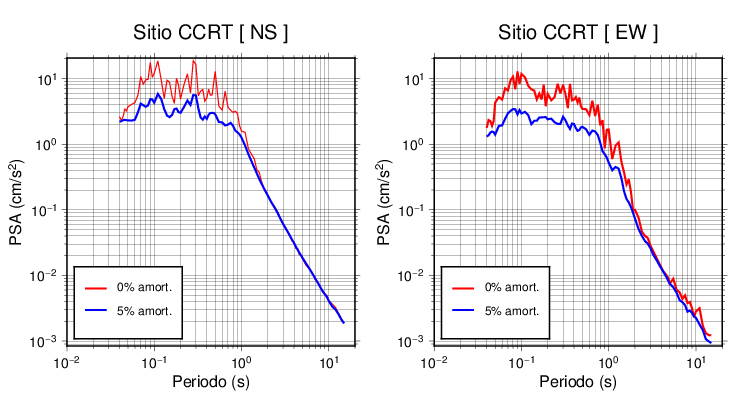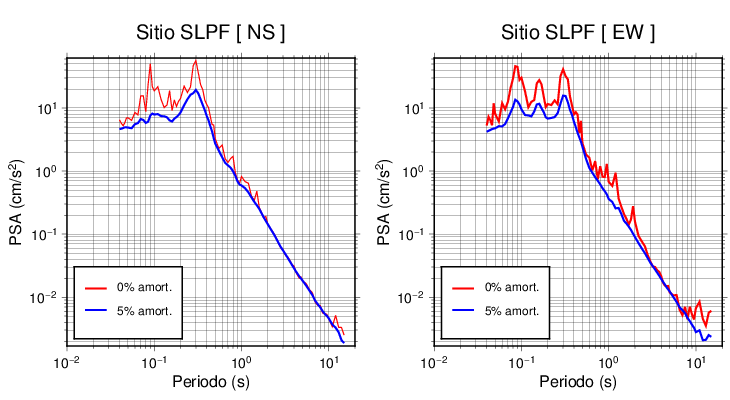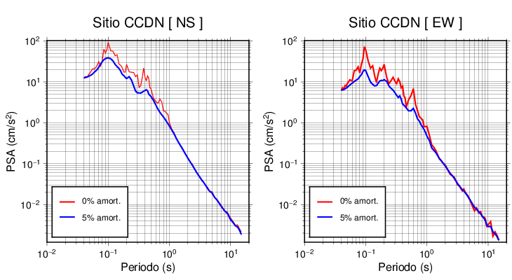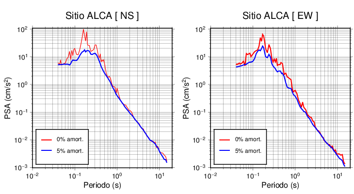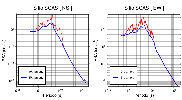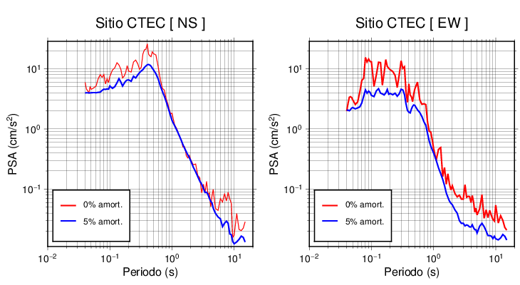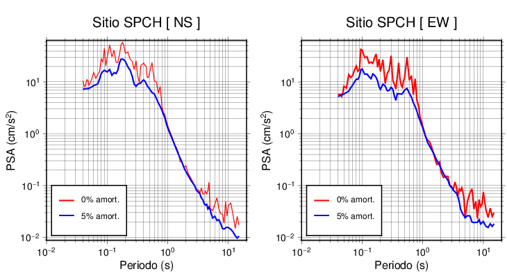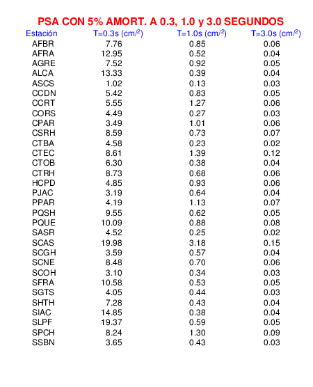 Las construcciones civiles generalmente poseen niveles de amortiguamiento en el rango de 2 a 7%. Para edificaciones normales, se asume que es de 5%. Esta tala contiene los valores de PSA en cm/s2 calculados del espectro de respuesta con 5% de amortiguamiento a 1 segundo.