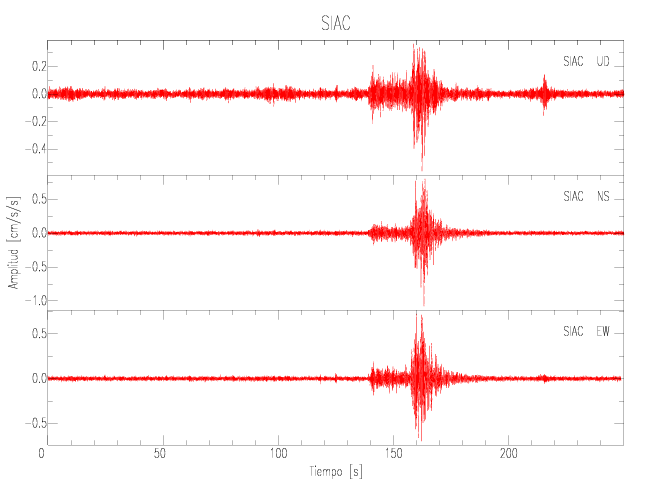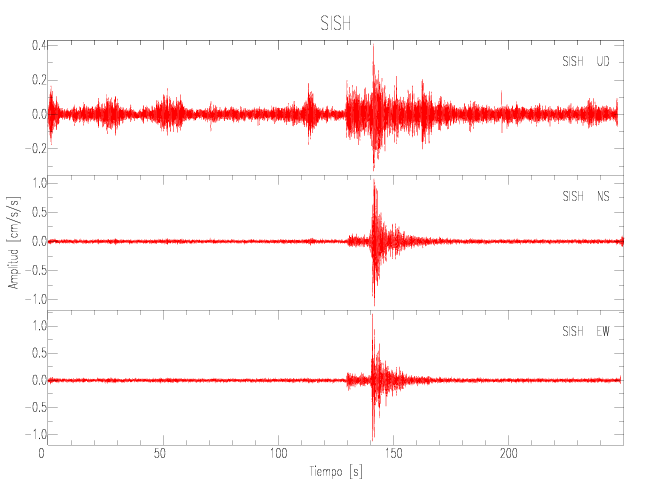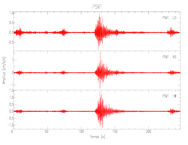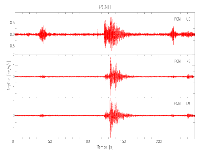 Gráficos de las componentes de aceleración para sitios con PGA > 2 cm/s2