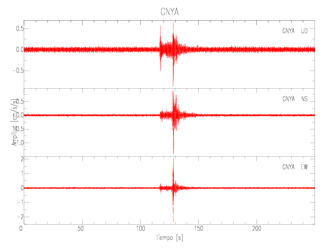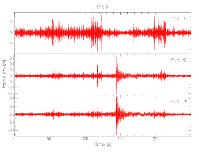 Gráficos de las componentes de aceleración para sitios con PGA > 2 cm/s2