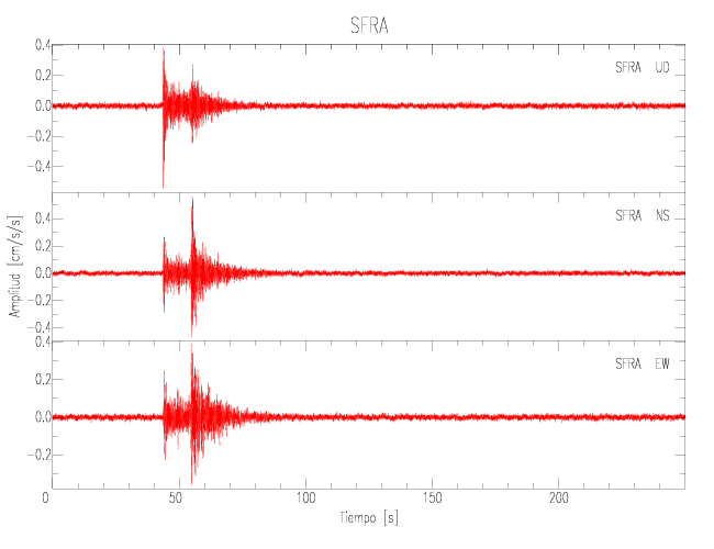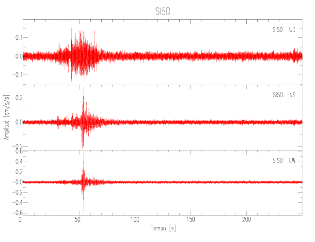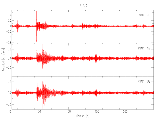 Gráficos de las componentes de aceleración para sitios con PGA > 2 cm/s2