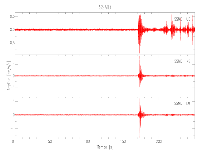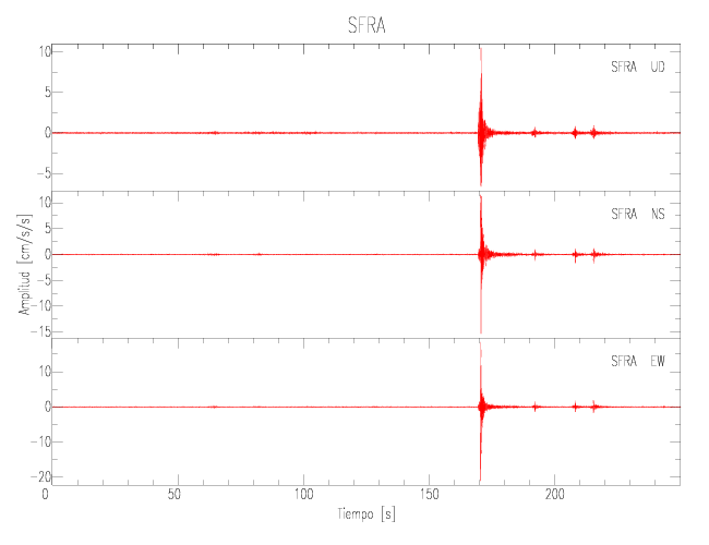 Gráficos de las componentes de aceleración para sitios con PGA > 2 cm/s2