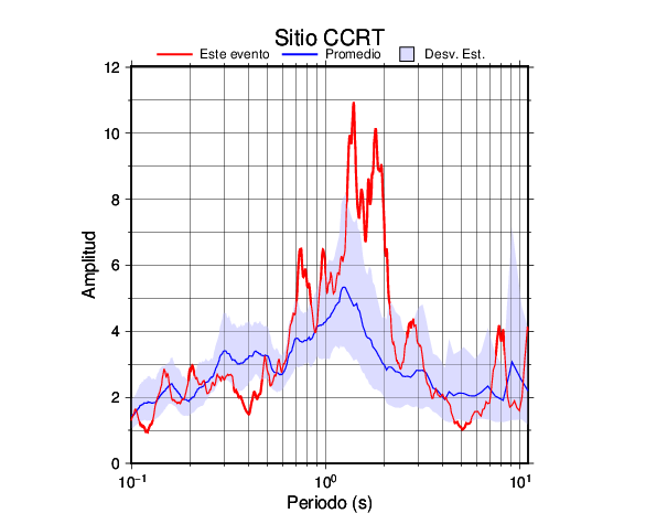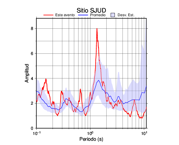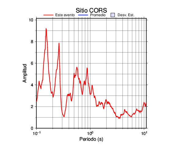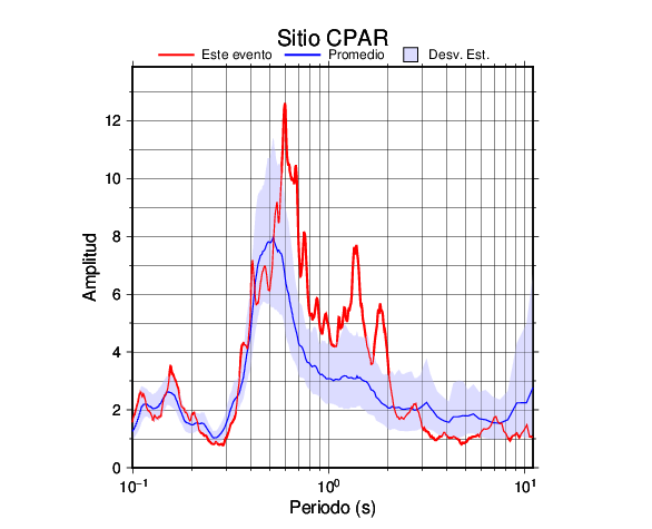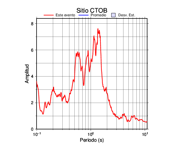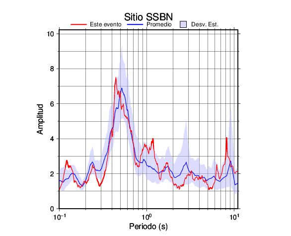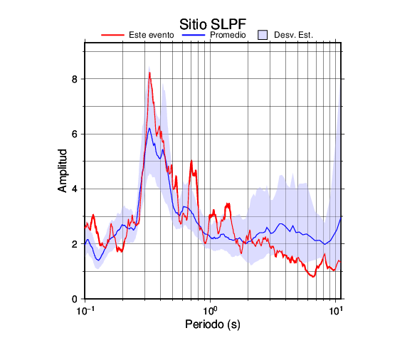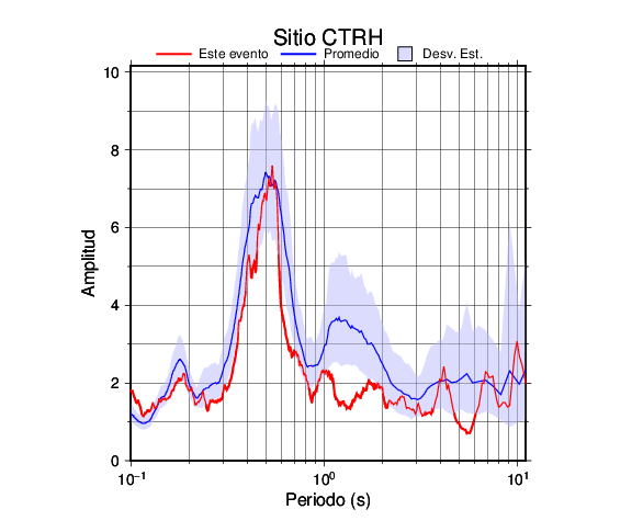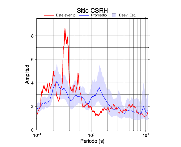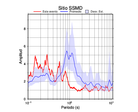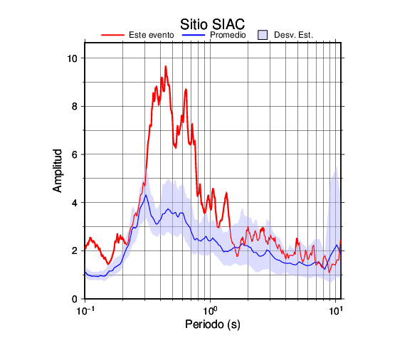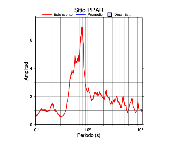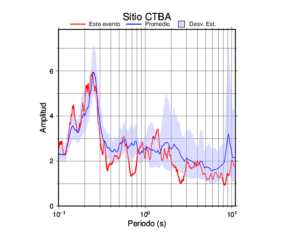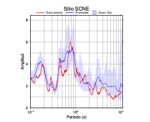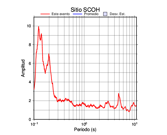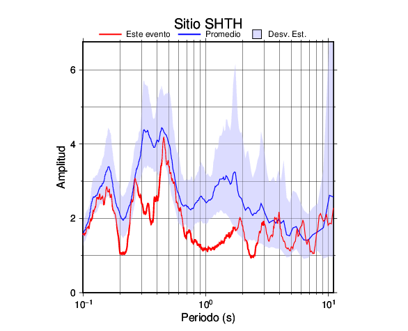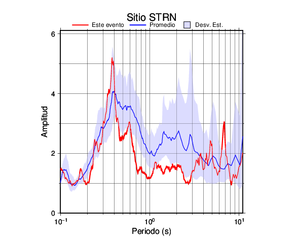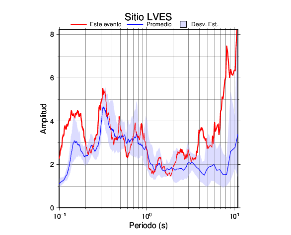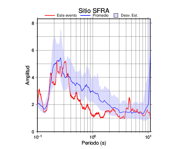 Los resultados que se presentan aquí fueron obtenidos luego de dividir las componentes horizontales entre la componente vertical (conocido como técnica H/V). Se grafica tanto el efecto de sitio del sismo registrado como el valor promedio en cada estación y su correspondiente desviación estándar.