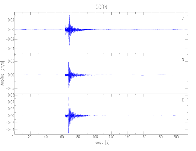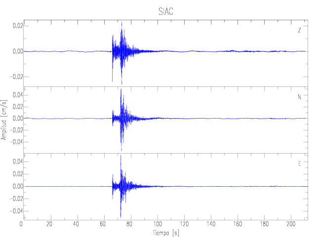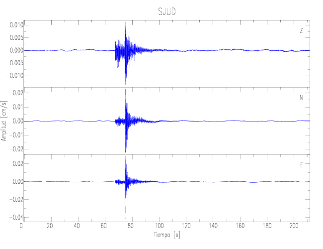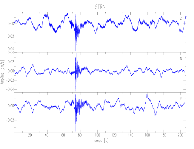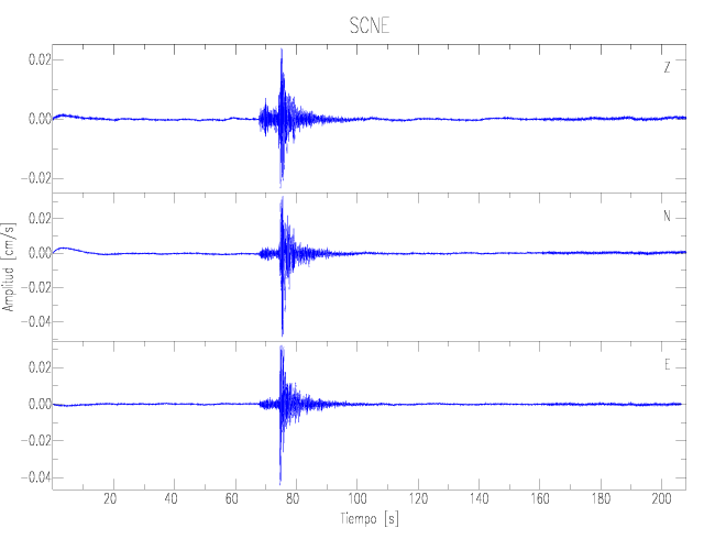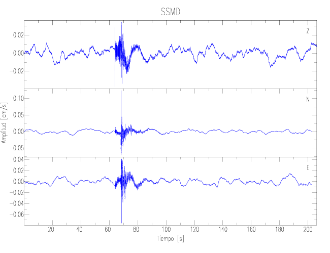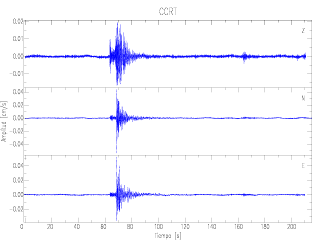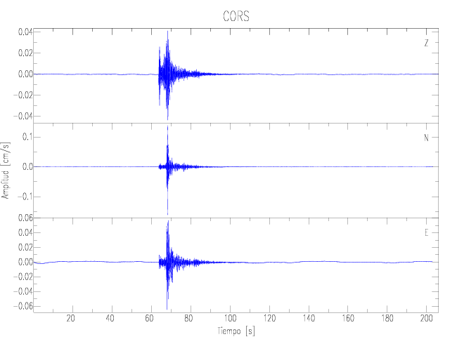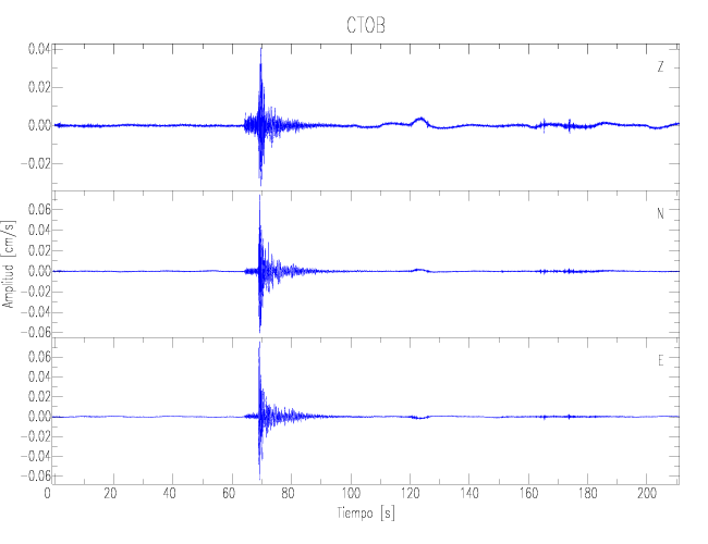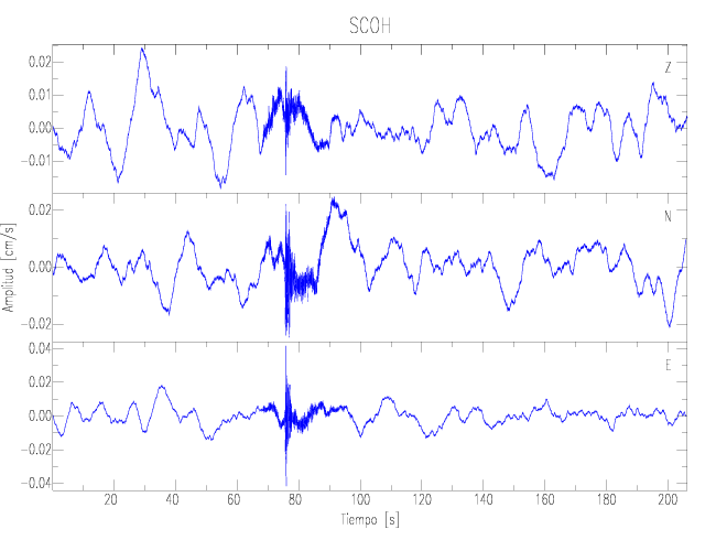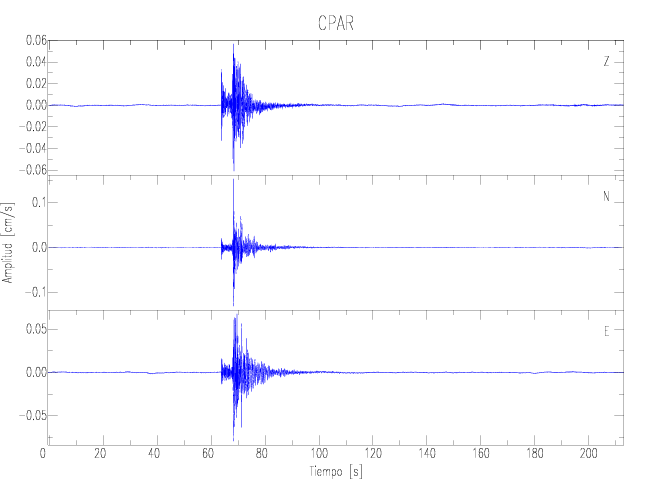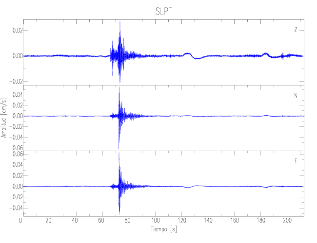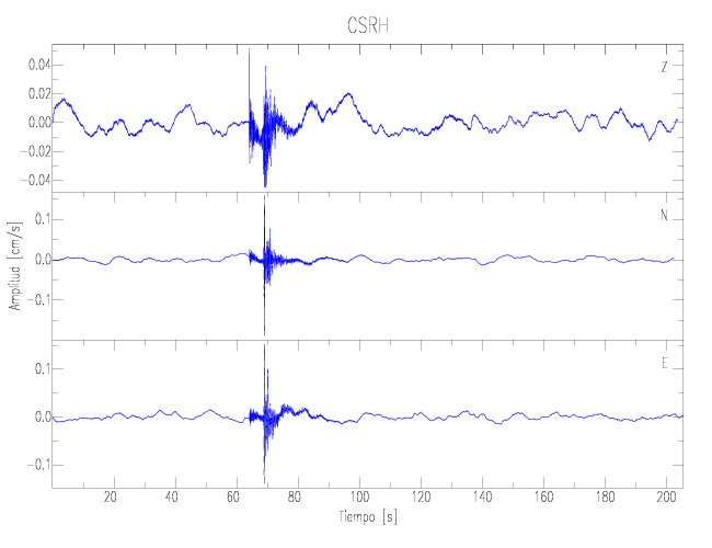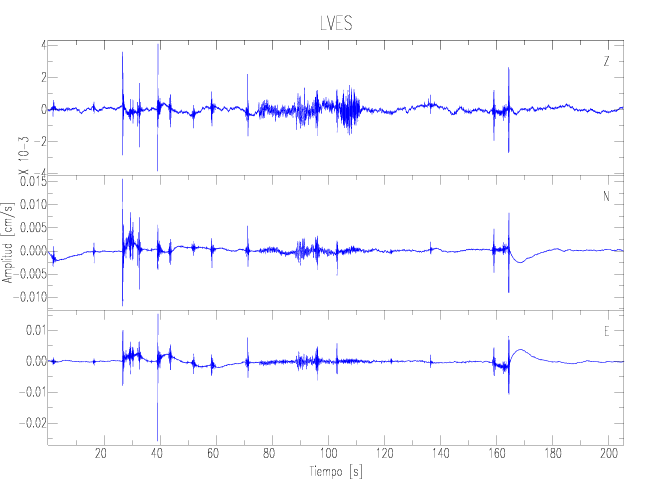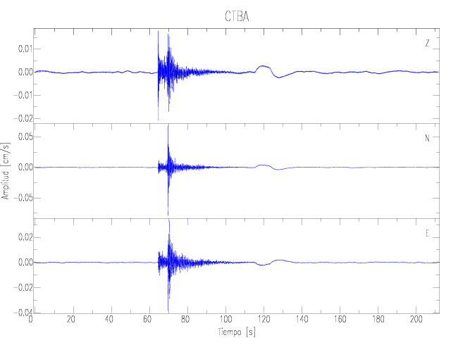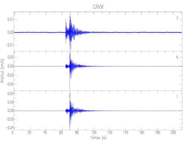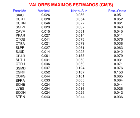 Los registros de velocidad se obtienen de la integración de los datos de aceleración. Esta tabla contiene los valores de velocidad máxima (PGV por sus siglas en inglés) para cada componente en cm/s. Las estaciones se listan en orden alfabético y corresponden a los sitios en que el nivel de aceleración fue superior a los 2 cm/s2.