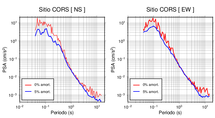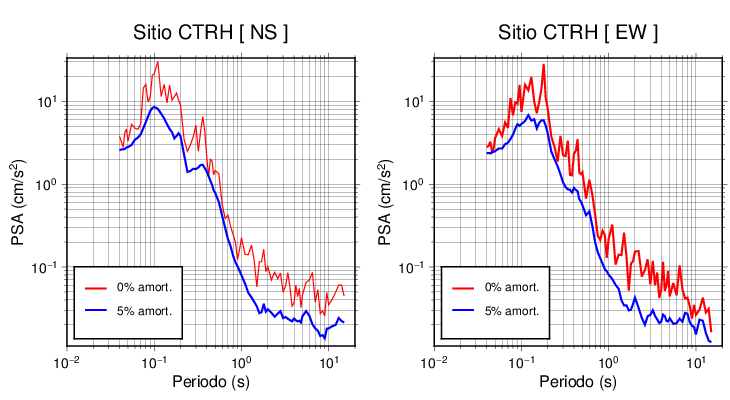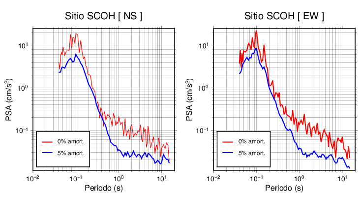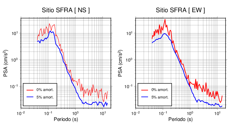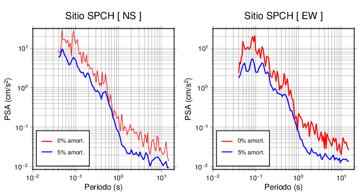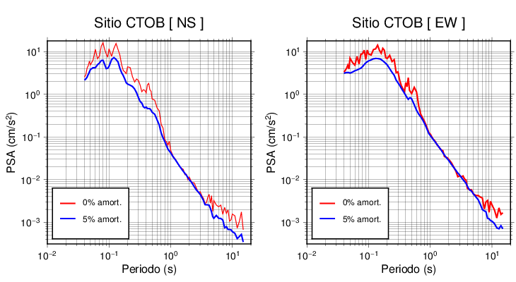 Las construcciones civiles generalmente poseen niveles de amortiguamiento en el rango de 2 a 7%. Para edificaciones normales, se asume que es de 5%. Esta tala contiene los valores de PSA en cm/s2 calculados del espectro de respuesta con 5% de amortiguamiento a 1 segundo.