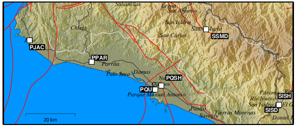 En esta sección se muestra el detalle de la ubicación de las estaciones del LIS en todo el país. Los valores de aceleración máxima se muestran en porcentaje de la gravedad (%g) en los mapas superiores.