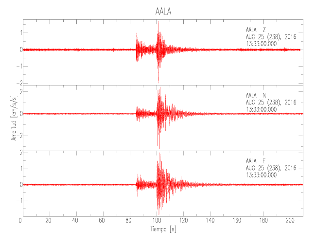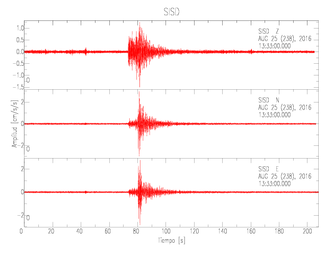 Los datos de aceleración máxima registrada se interpolan para obtener un mapa de isoaceleraciones. En el se puede ver la tendencia general de la amplificación de todo el país a partir del lugar en que el movimiento fue más intenso. Se muestran los mapas para cada una de las tres componentes (Vertical, Norte-Sur y Este-Oeste) además del mapa con el valor máximo de los tres. También se muestra el mapa de los valores máximos en la componente RADIAL y TRANSVERSAL.