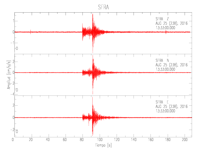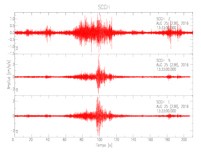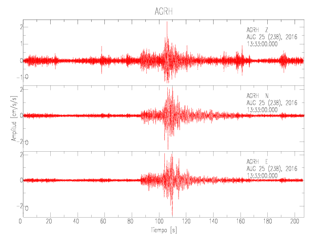 Gráficos de las componentes de aceleración para sitios con PGA > 2 cm/s2