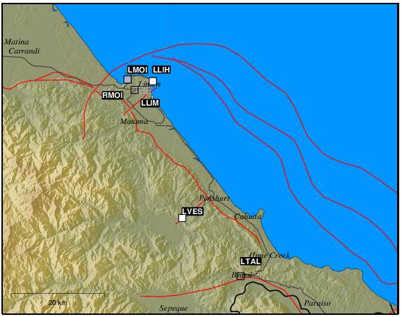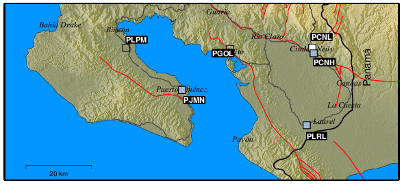En esta sección se muestra el detalle de la ubicación de las estaciones del LIS en todo el país. Los valores de aceleración máxima se muestran en porcentaje de la gravedad (%g) en los mapas superiores.