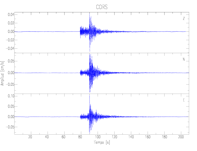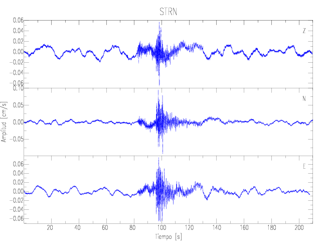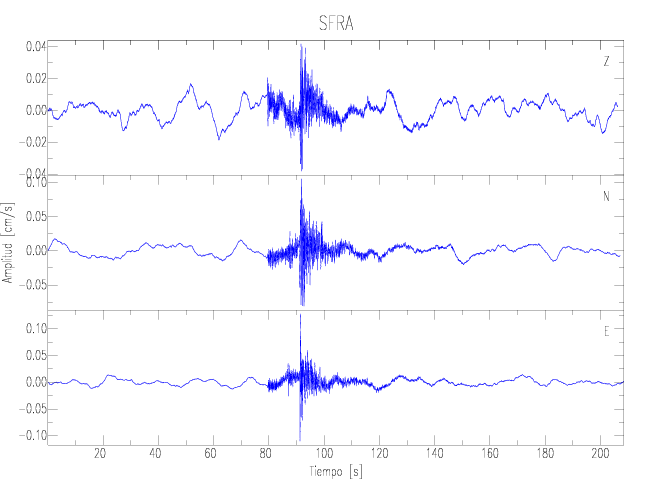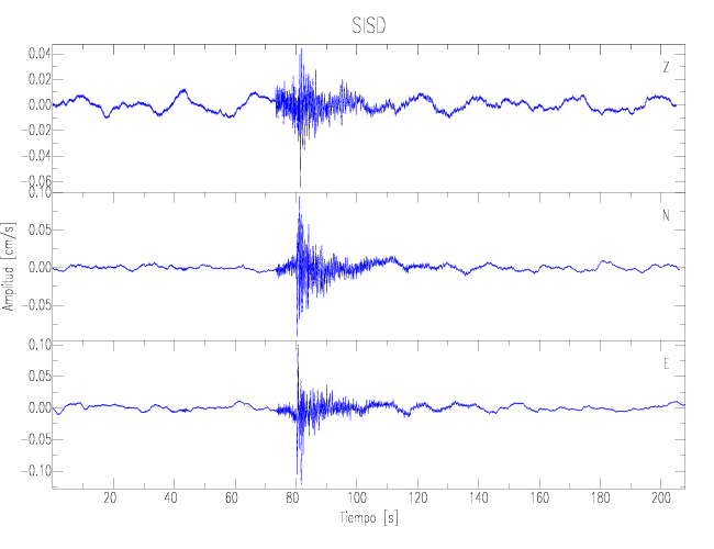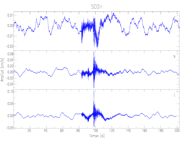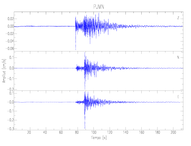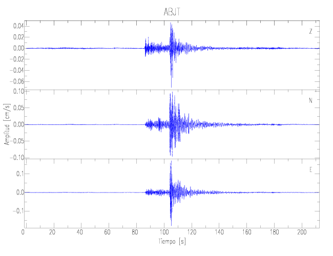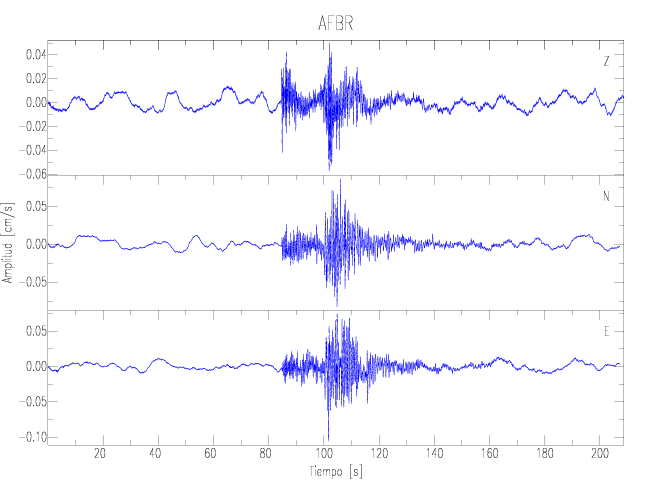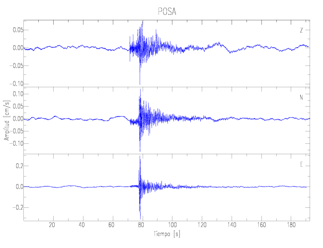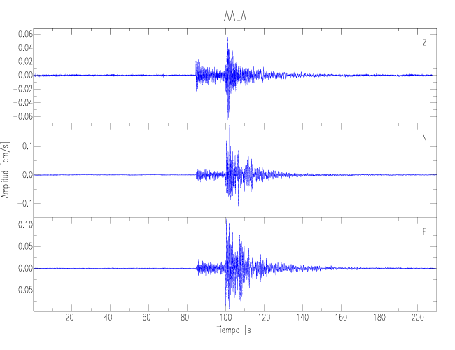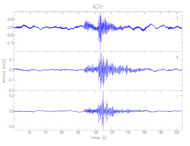 Los registros de velocidad se obtienen de la integración de los datos de aceleración. Esta tabla contiene los valores de velocidad máxima (PGV por sus siglas en inglés) para cada componente en cm/s. Las estaciones se listan en orden alfabético y corresponden a los sitios en que el nivel de aceleración fue superior a los 2 cm/s2.