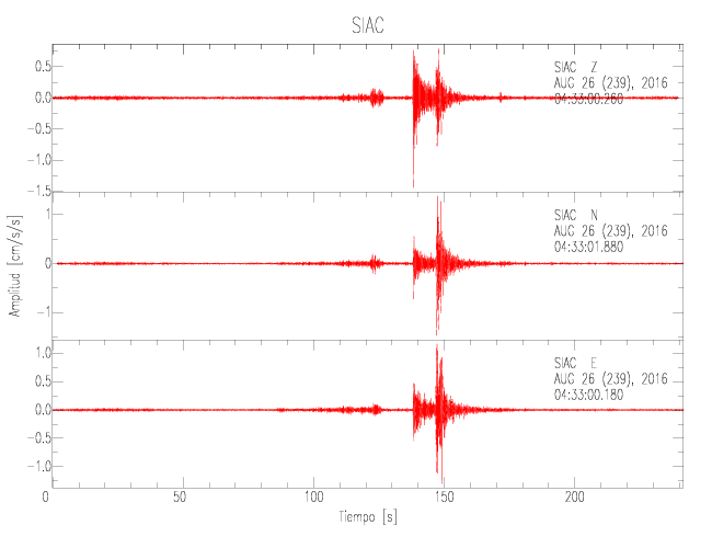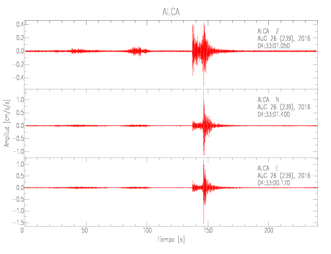 Gráficos de las componentes de aceleración para sitios con PGA > 2 cm/s2