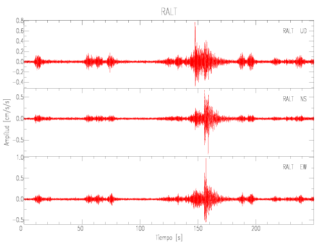 Gráficos de las componentes de aceleración para sitios con PGA > 2 cm/s2