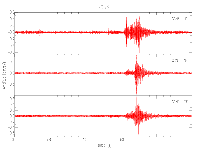 Gráficos de las componentes de aceleración para sitios con PGA > 2 cm/s2