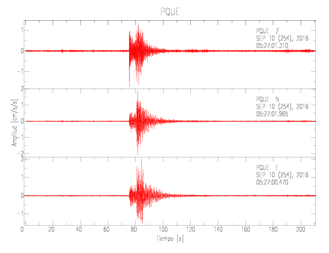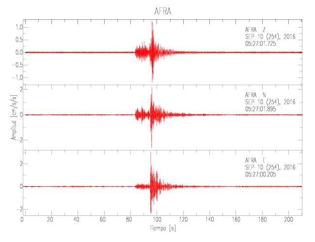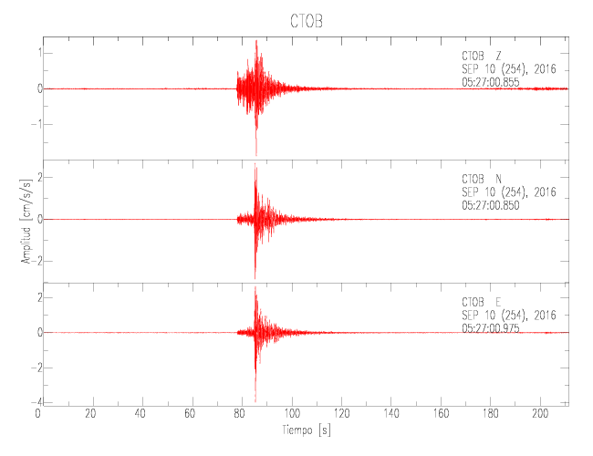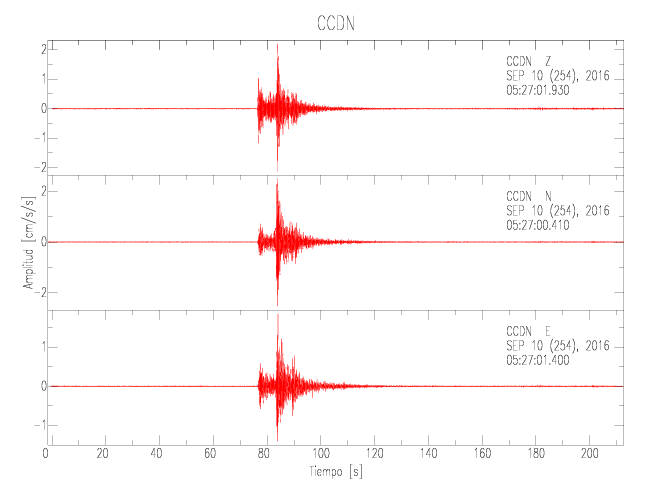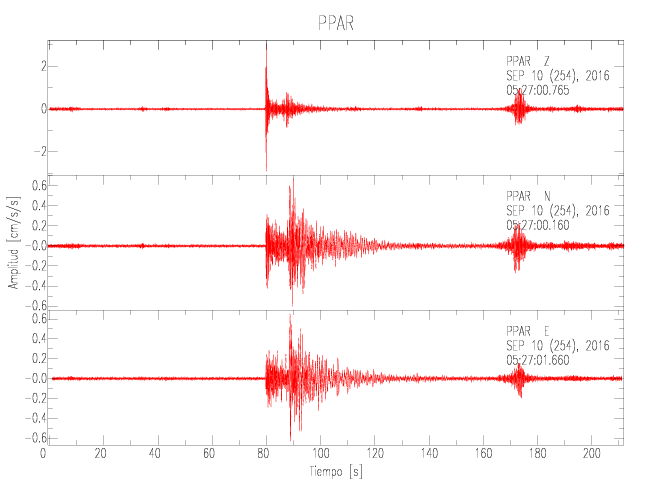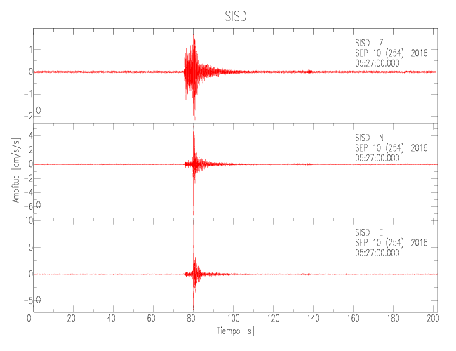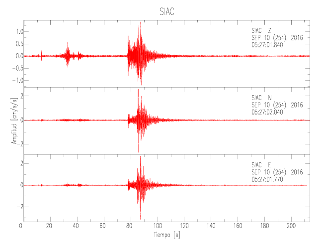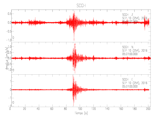 Gráficos de las componentes de aceleración para sitios con PGA > 2 cm/s2