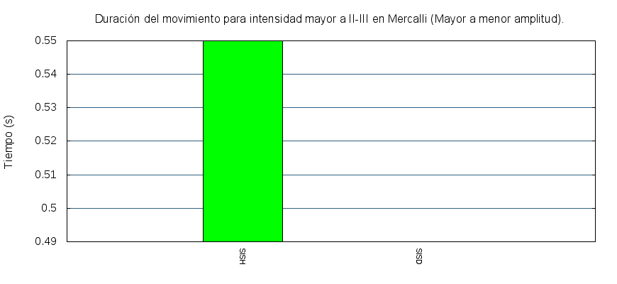 Este parámetro suele tomarse como el tiempo comprendido entre el primero y el último segundo en que se sobrepasa un umbral de aceleración de interés. Este umbral es generalmente 0.05g (aproximadamente 50 cm/s2). Sin embargo, este informe el umbral es de 2 cm/s2. La razón para esta elección se debe a que es el valor de aceleración que se encuentra en la escala de intensidad de II-III donde el movimiento se vuelve perceptible para las personas.
