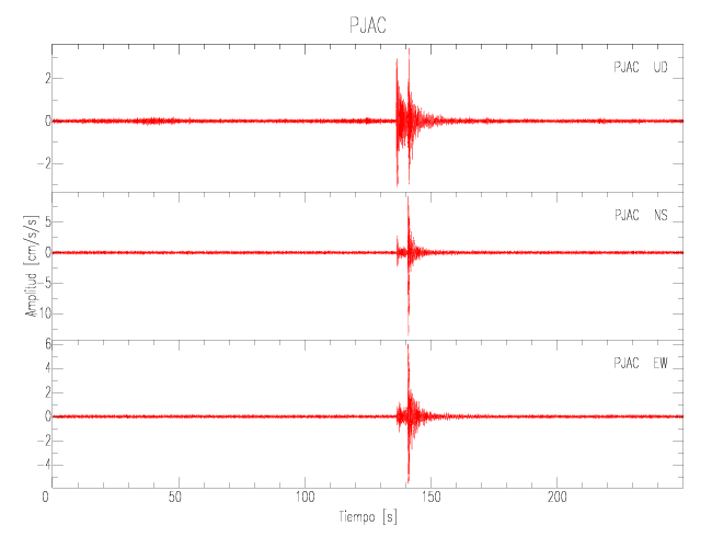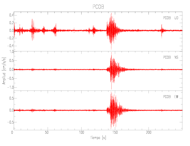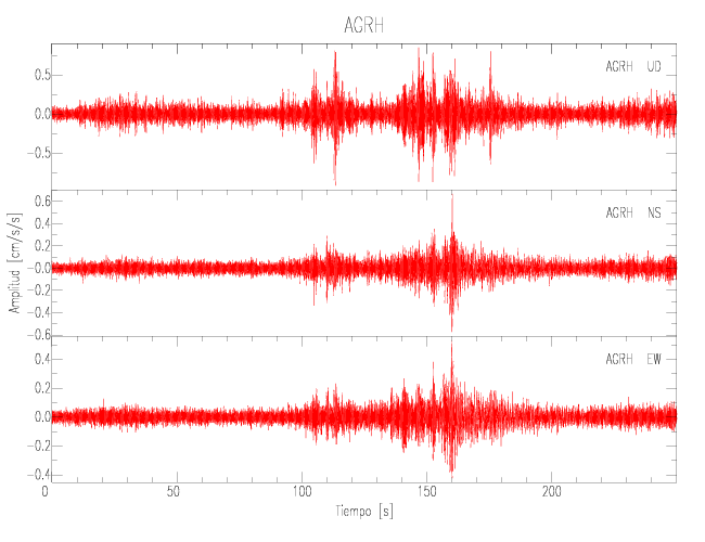 Gráficos de las componentes de aceleración para sitios con PGA > 2 cm/s2