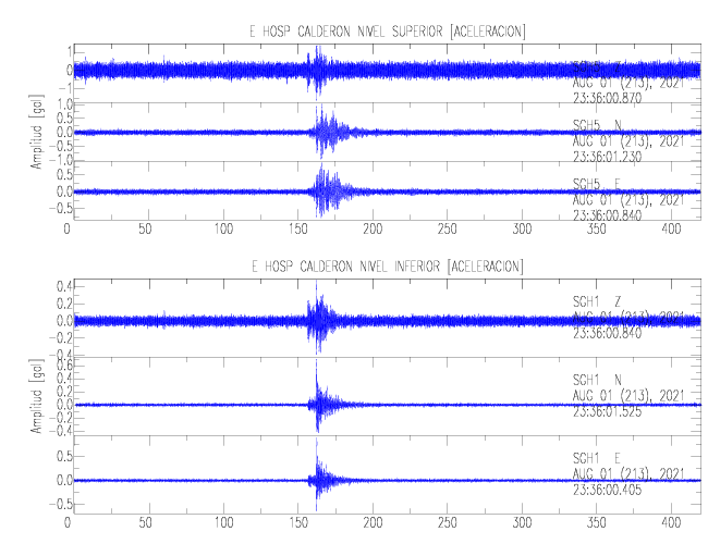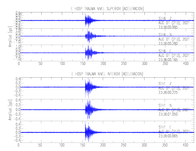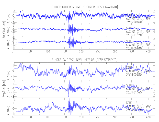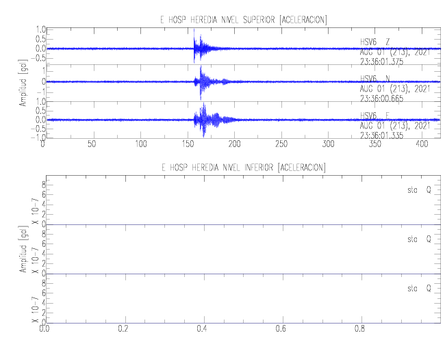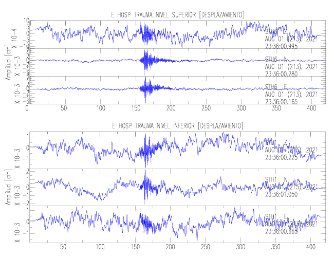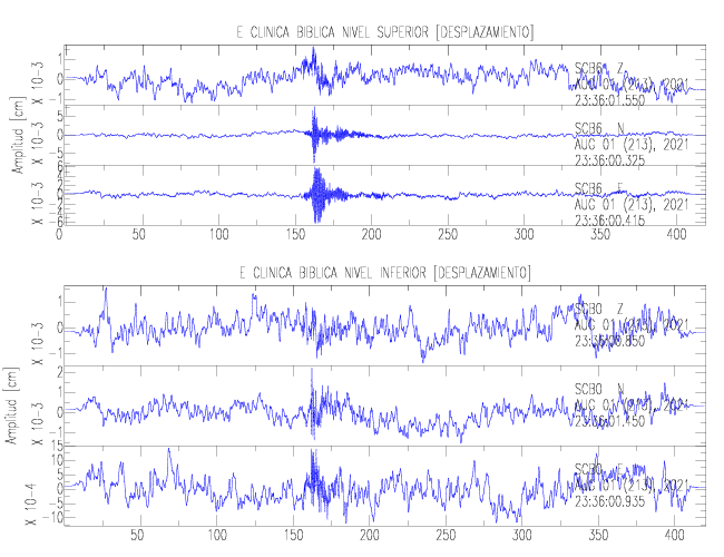 En esta sección se muestran los registros de aceleración (ac), velocidad (ve) y desplazamiento (de) de los niveles superior e inferior de varios edificios que se encuentran conectados al LIS ( http://www.estructuras.lis.ucr.ac.cr )