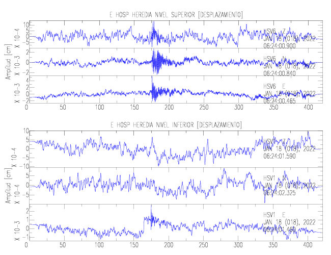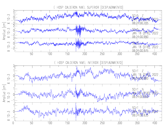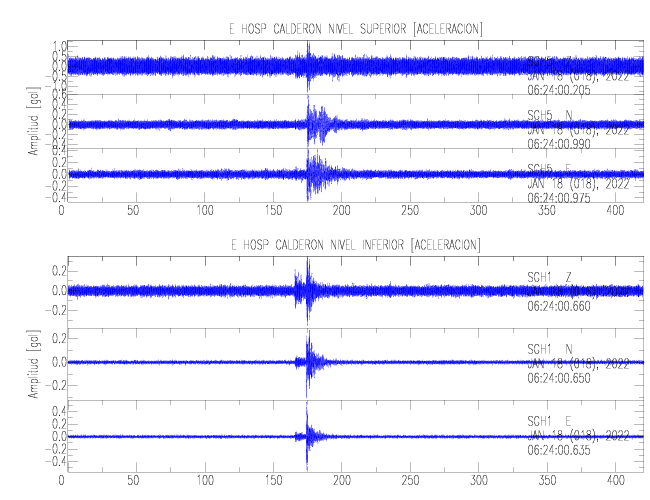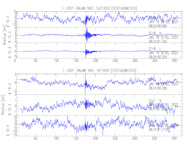 En esta sección se muestran los registros de aceleración (ac), velocidad (ve) y desplazamiento (de) de los niveles superior e inferior de varios edificios que se encuentran conectados al LIS ( http://www.estructuras.lis.ucr.ac.cr )