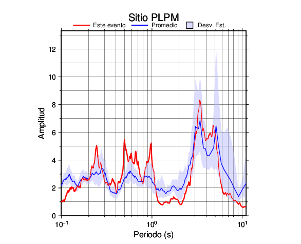 Los resultados que se presentan aquí fueron obtenidos luego de dividir las componentes horizontales entre la componente vertical (conocido como técnica H/V). Se grafica tanto el efecto de sitio del sismo registrado como el valor promedio en cada estación y su correspondiente desviación estándar.