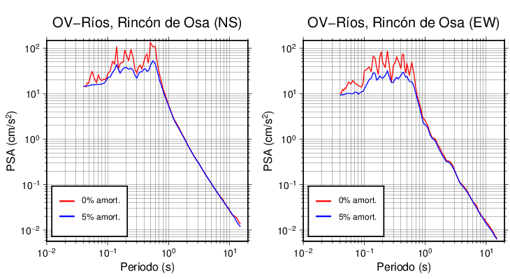 Esta tabla contiene los valores de PSA en cm/s2 calculados del espectro de respuesta con 5% de amortiguamiento a 1 segundo (se muestran los valores para aquellas estaciones que tuvieron un valor de aceleración superior a 5 cm/s2).