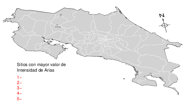 Mapa mostrando la IA en cada sitio de registro. Se grafica el valor máximo de la tabla anterior.