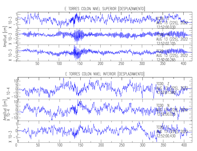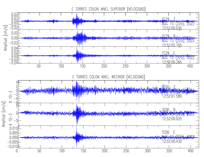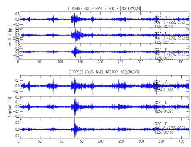 En esta sección se muestran los registros de aceleración (ac), velocidad (ve) y desplazamiento (de) de los niveles superior e inferior de varios edificios que se encuentran conectados al LIS ( http://www.estructuras.lis.ucr.ac.cr )