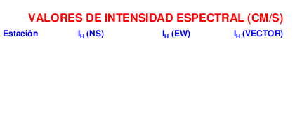 En esta sección se muestra el cáculo de la intensidad de Housner, IH para la componente norte-sur (NS) y este-oeste (EW) y la suma vectorial de los registros de aceleración que tuvieron valores superiores a los 5 cm/s2.