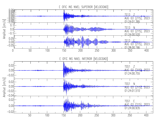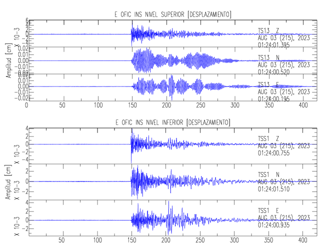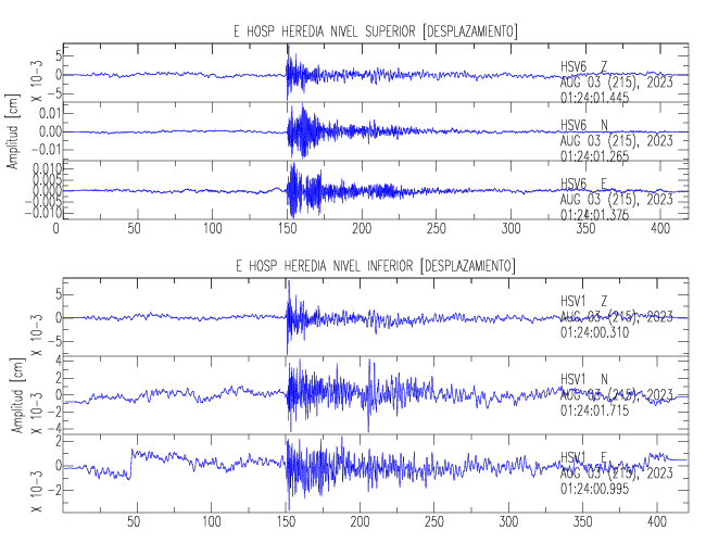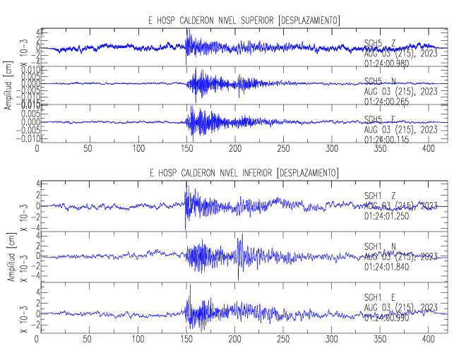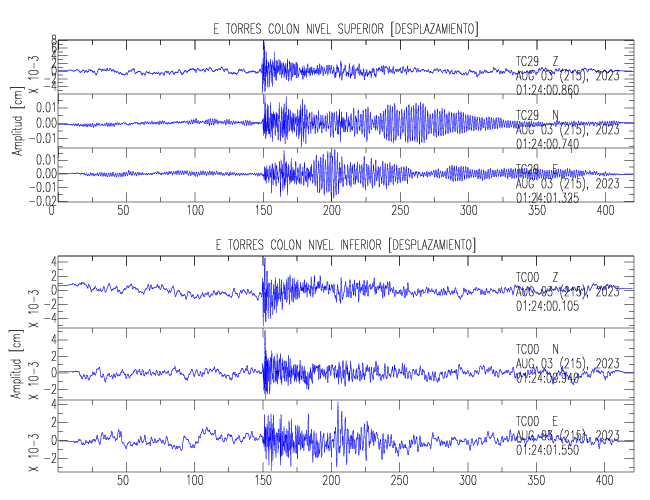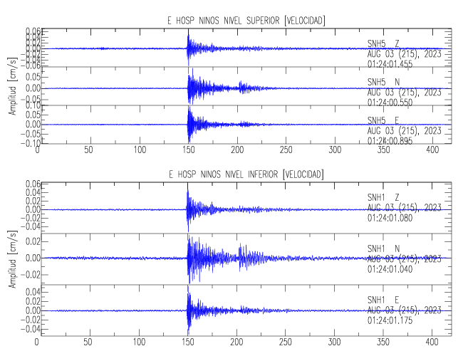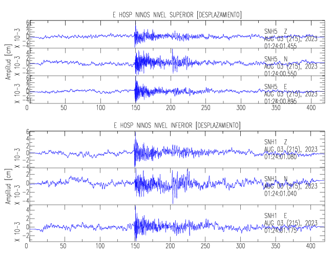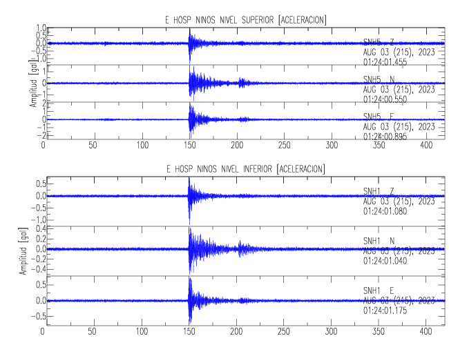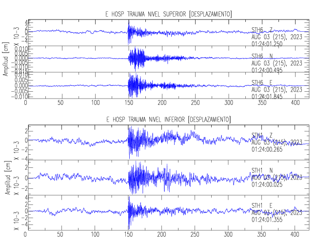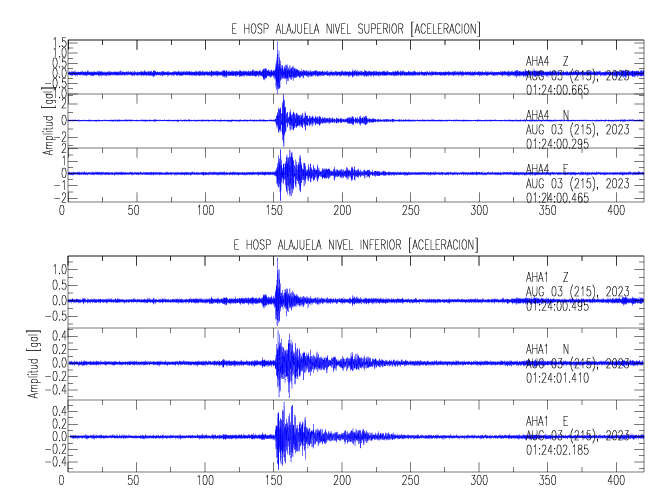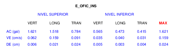 En esta sección se muestran los registros de aceleración (ac), velocidad (ve) y desplazamiento (de) de los niveles superior e inferior de varios edificios que se encuentran conectados al LIS ( http://www.estructuras.lis.ucr.ac.cr )