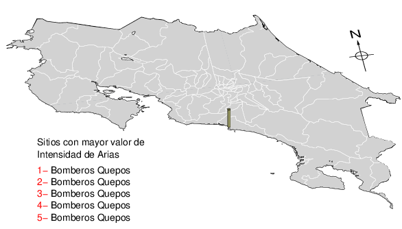 Mapa mostrando la IA en cada sitio de registro. Se grafica el valor máximo de la tabla anterior.