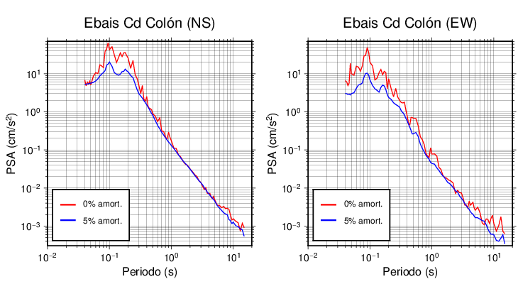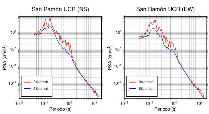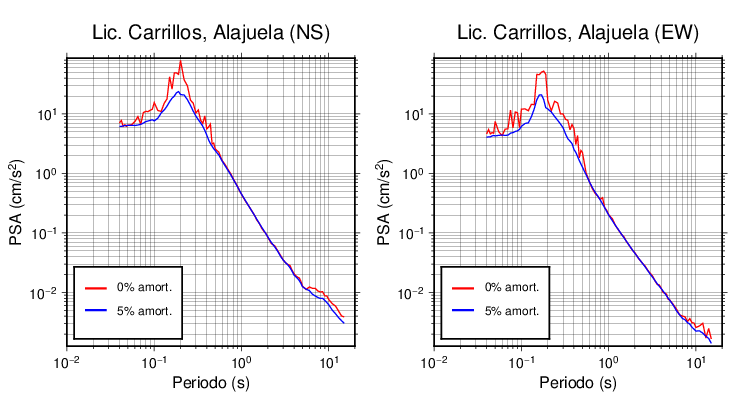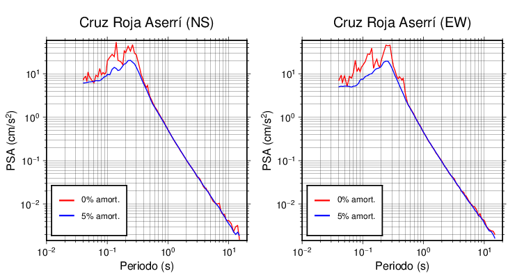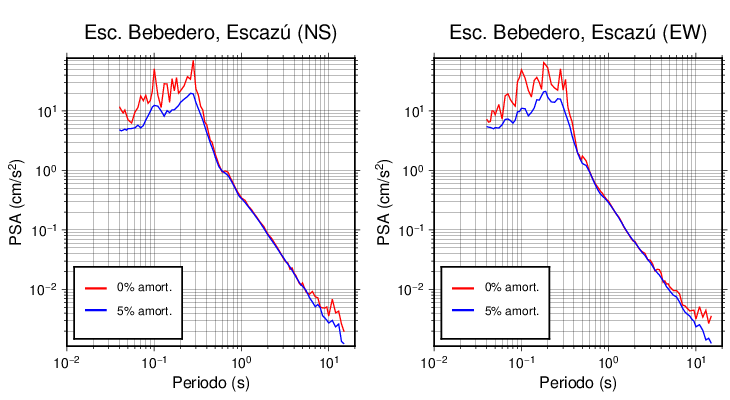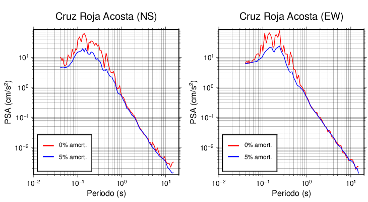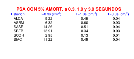 Esta tabla contiene los valores de PSA en cm/s2 calculados del espectro de respuesta con 5% de amortiguamiento a 1 segundo (se muestran los valores para aquellas estaciones que tuvieron un valor de aceleración superior a 5 cm/s2).