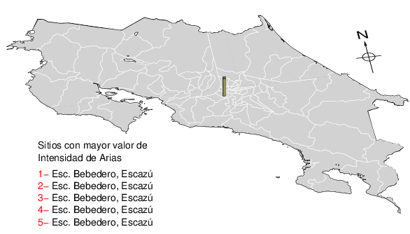 Mapa mostrando la IA en cada sitio de registro. Se grafica el valor máximo de la tabla anterior.