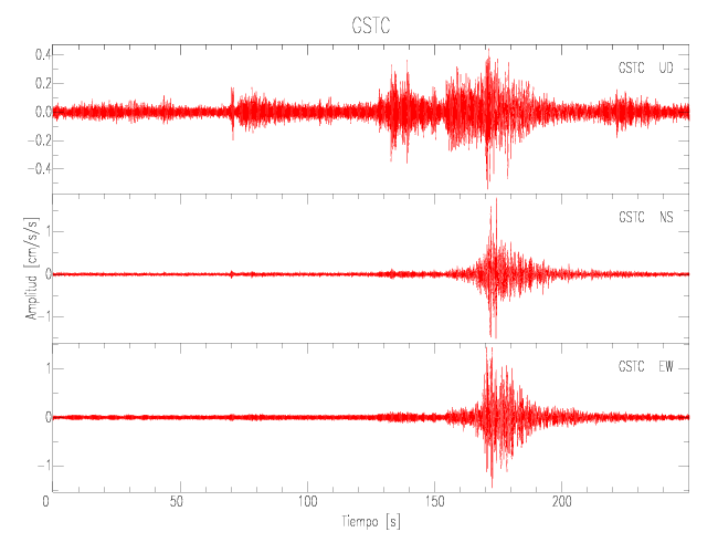 Gráficos de las componentes de aceleración para sitios con PGA > 2 cm/s2