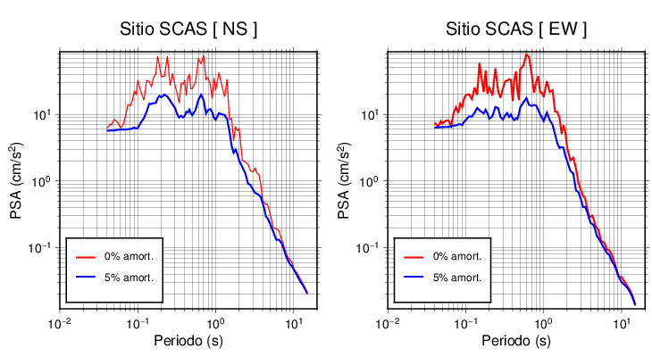 Las construcciones civiles generalmente poseen niveles de amortiguamiento en el rango de 2 a 7%. Para edificaciones normales, se asume que es de 5%. Esta tala contiene los valores de PSA en cm/s2 calculados del espectro de respuesta con 5% de amortiguamiento a 1 segundo.