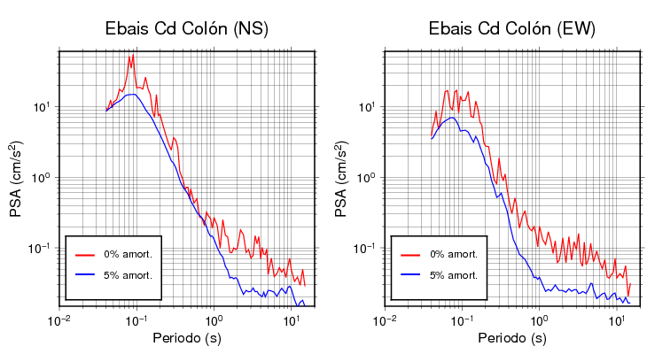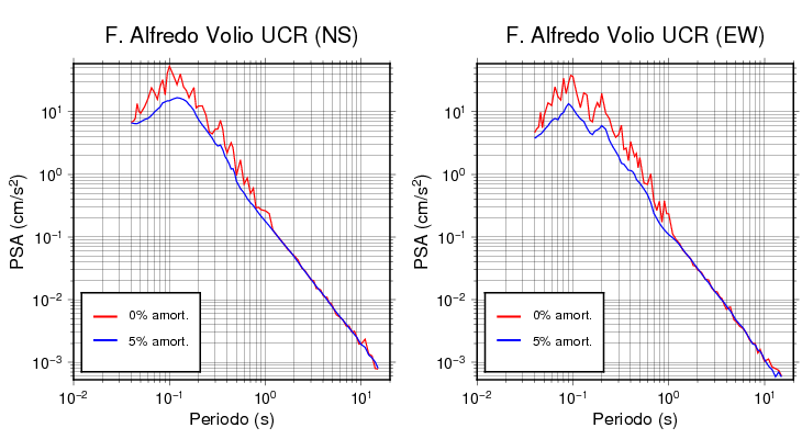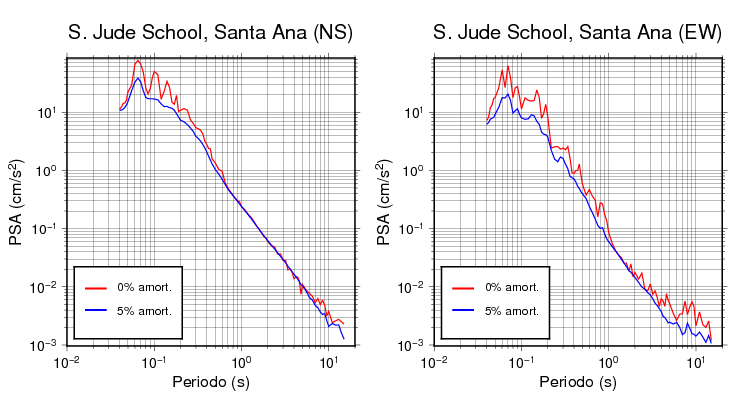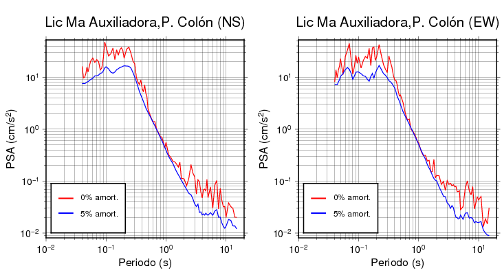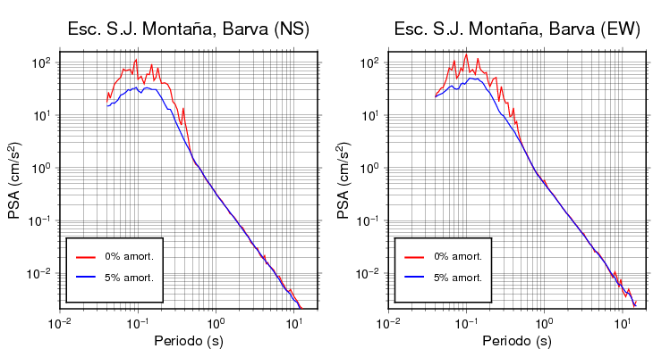 Las construcciones civiles generalmente poseen niveles de amortiguamiento en el rango de 2 a 7%. Para edificaciones normales, se asume que es de 5%. Esta tabla contiene los valores de PSA en cm/s2 calculados del espectro de respuesta con 5% de amortiguamiento a 1 segundo (se muestran los valores para aquellas estaciones que tuvieron un valor de aceleración superior a 5 cm/s2).