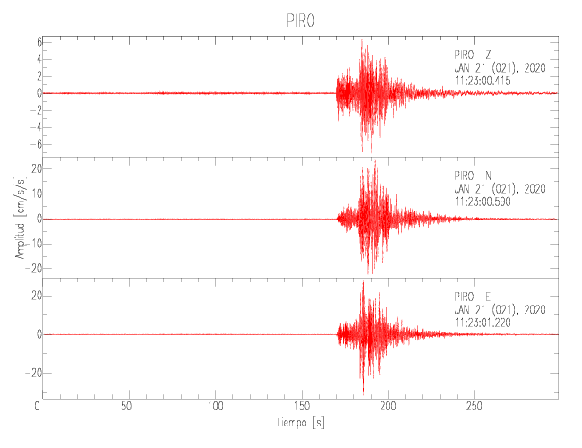 Gráficos de las componentes de aceleración para sitios con PGA > 5 cm/s2